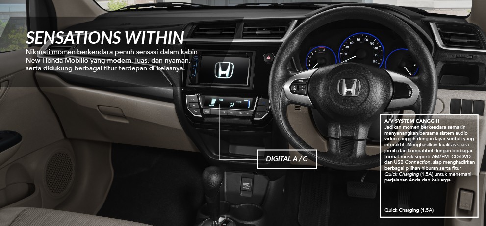 Desain semakin modern, kabin luas, didukung performa prima dan konsumsi bahan bakar yang hemat, serta dilengkapi fitur keselamatan lengkap, New Honda Mobilio memberikan Anda dan keluarga sebuah pengalaman berkendara yang sensational.